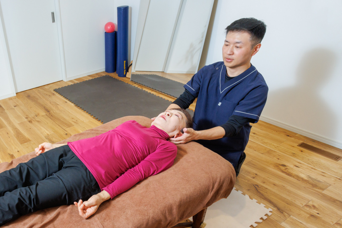 来院時にお客様の体の状態を聞き、触ってみて、体を改善する為の